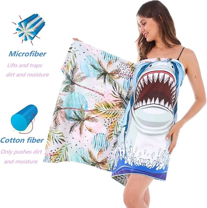 - ❤[SIZE AND MATERIAL]: Beach towel size is 31" x 63". New developed microfiber material is eco-friendly, no faded and no smell which is not same as normal towel material. It has special characteristics – quick dry, super absorbent, sand free, baby soft;