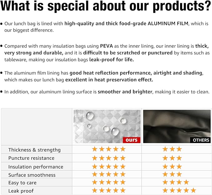 - Special Feature : Keep warm, Keep fresh, Food-grade, Keep cold, Insulated lunch bag