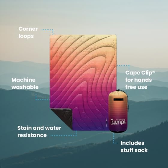 - VERSATILE COMFORT - The Rumpl Original Puffy Blanket is the ultimate companion for outdoor enthusiasts and adventurers. Our puffy blankets combine the same technical materials found in premium sleeping bags and insulated jackets. Featuring a DWR coating for water, stain, and odor resistance, this insulated puffer blanket is perfect for camping, hiking, traveling, picnics, beach days, and more. It repels water, dirt, sand, spilled drinks, and pet hair. Available in a variety of colors and prints.