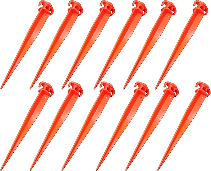 16" 12 PCS Tent Pegs Garden Stakes Durable and Strong Plastic Tent Stakes for Beach Mat, Camping, Hiking, Garden, Landscape Stakes, Orange Stakes UV Resistant