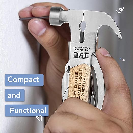 - Seeking an ideal gift for your grandfather? Consider our Multitool Camping Hammer for Men! This multifunctional 6-inch gadget combines a hammer, pliers, nail claw, wire cutter, screwdriver, and more - perfect for home projects or camping escapades. It comes with an attachable case. Moreover, it has heartfelt engravings such as "World's Best Grandpa".