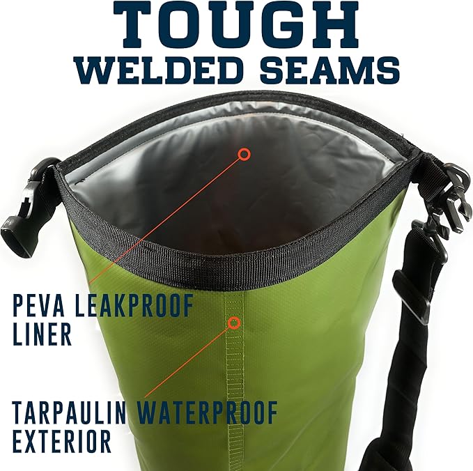 - Durable, Waterproof and Insulated – Our roll top insulated cooler bag is made of waterproof welded tarpaulin exterior, a layer of closed cell insulation, and a welded PEVA liner to protect from leakage. Our closure is designed without zippers - just roll the top down a few times and then lock the clasps for a water-tight seal. It even floats! * Note: You can expect light condensation on the outside of the bag when used as a cooler.