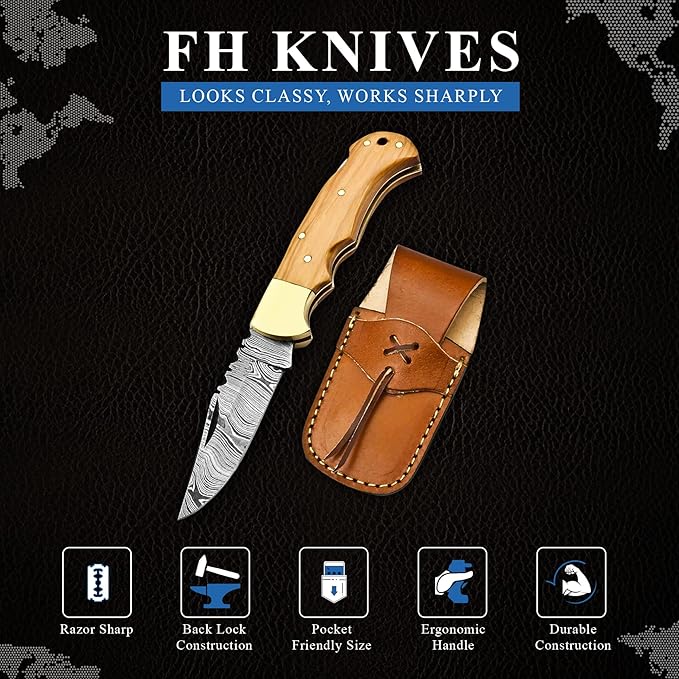 - Easy to Carry: Our compact cool pocket knife is indeed a piece of art made by skilled knife maker. It comes with a sturdy pure cowhide leather sheath with integrated belt loop to ensure safe carrying.