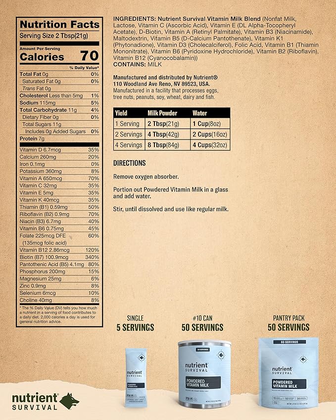 - FEED YOUR FREEDOM: Enjoy Nutrient Survival creamy, non-fat vitamin milk warm or cold. Just add water to the milk powder to get the instant milk ready to use. Nutrient dense powdered milk, a great go-to for both everyday and emergency situations