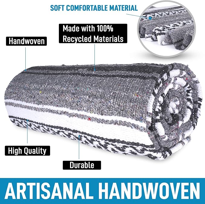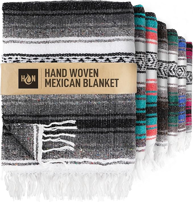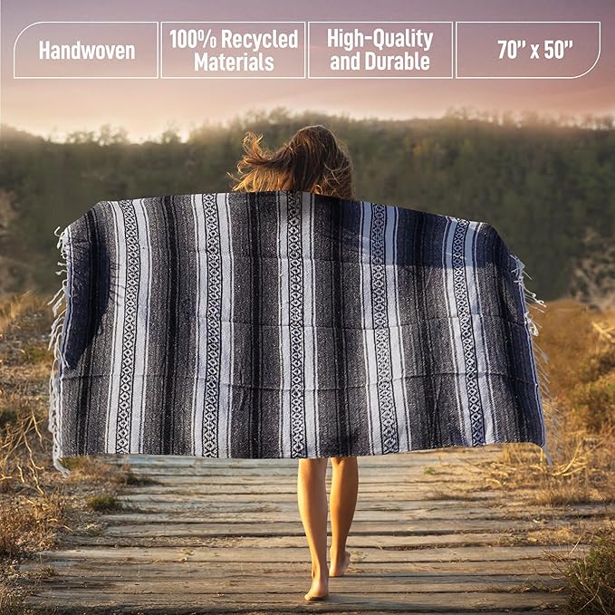 - VERSATILE HANDWOVEN BLANKETS: These serape blankets stay true to their heritage as each blanket is beautifully handcrafted with slight variations in size and weight as part of the timeless look and feel. Place it on the wall as part of your western home decor, or use it as a yoga blanket, car blanket, picnic blanket, saddle blanket, beach blanket, and much more.