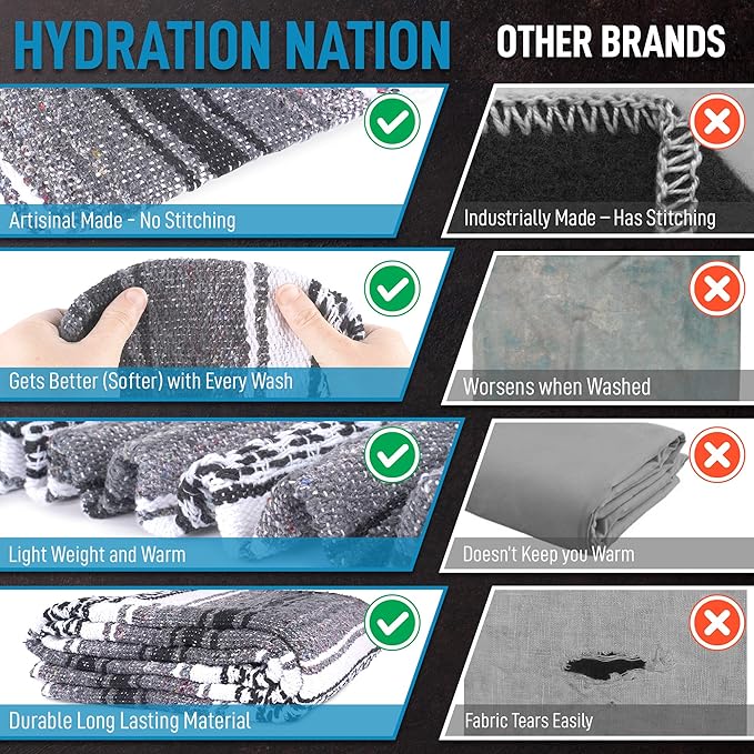 - AUTHENTIC ARTISANAL BLANKETS: Light, soft, and breathable, these Mexican blankets not only add color and style but also provide the ultimate comfort. Traditionally woven by Tiaxcala, Mexico, our baja blanket is perfect for all seasons; roll it up and take it with you to a beach party or enjoy those fall snuggles on a chilly night.