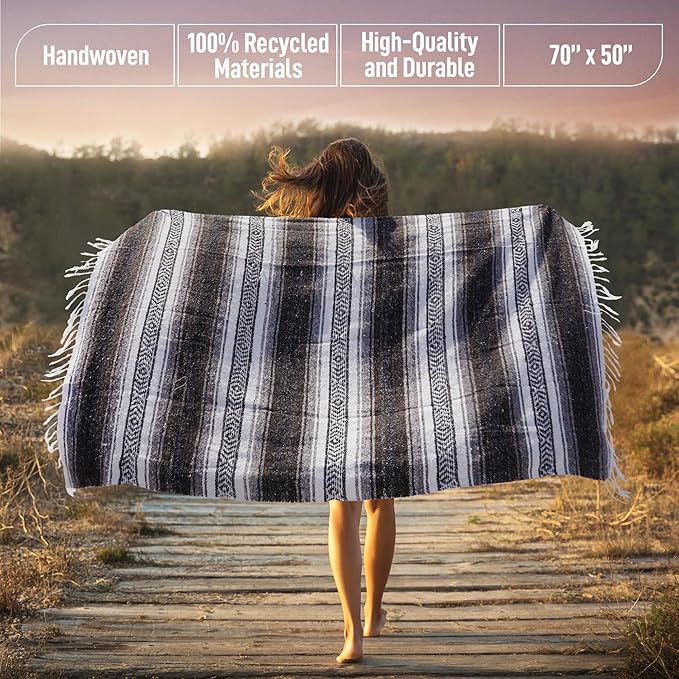 - VERSATILE HANDWOVEN BLANKETS: These serape blankets stay true to their heritage as each blanket is beautifully handcrafted with slight variations in size and weight as part of the timeless look and feel. Place it on the wall as part of your western home decor, or use it as a yoga blanket, car blanket, picnic blanket, saddle blanket, beach blanket, and much more.