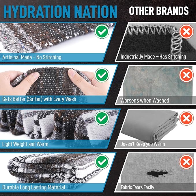- HYDRATION NATION 5-YEAR GUARANTEE: We have the utmost confidence in our travel blanket and back this up with a 5-year warranty. If there are ever any issues, just contact us, and we will make it right. Stay happy with a snuggly blanket!