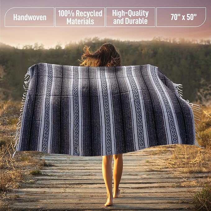 - VERSATILE HANDWOVEN BLANKETS: These serape blankets stay true to their heritage as each blanket is beautifully handcrafted with slight variations in size and weight as part of the timeless look and feel. Place it on the wall as part of your western home decor, or use it as a yoga blanket, car blanket, picnic blanket, saddle blanket, beach blanket, and much more.