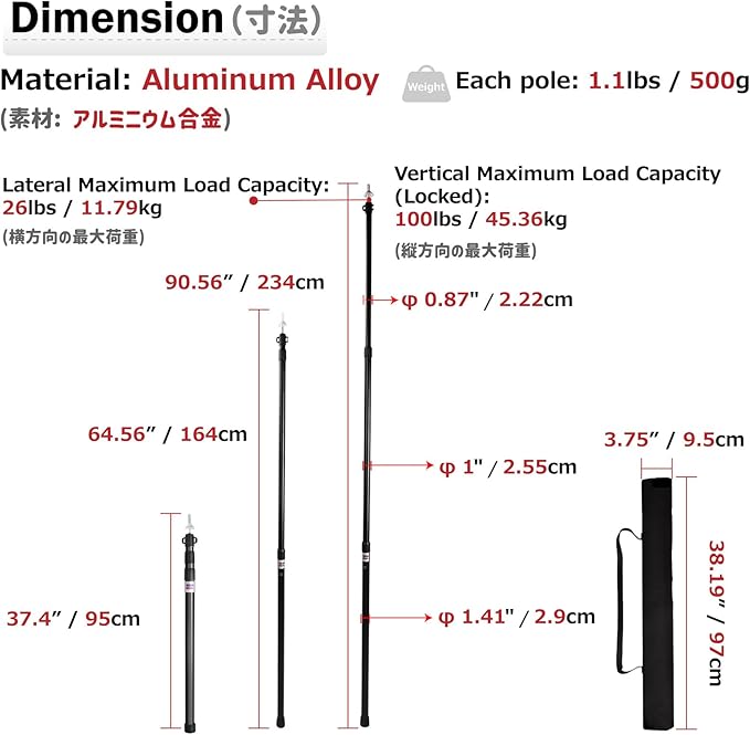 - ☘️ ADJUSTABLE & PORTABLE: With new telescopic technology, each pole can be extended to the height of 7.55ft, as small as the compact size of 2.95ft for easy to store. Each pole weighs only 1.32lbs. They can be taken anywhere you want