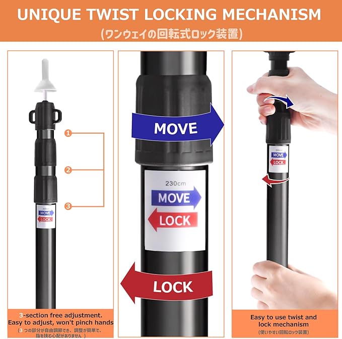 - ☘️ EASY TO USE: Simple twist and release/lock system, just stretch to the right length and rotate to the right and tighten it, or shrink to the shortest length for easy storage when not use