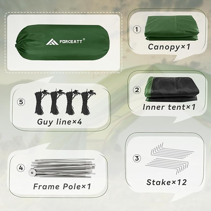 Forceatt Camping Tent 2/3/4 Person, Professional Waterproof & Windproof Lightweight Backpacking Tent Suitable for Outdoor,Hiking,Camping, Mountaineering and Travel