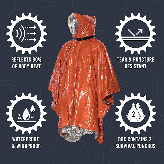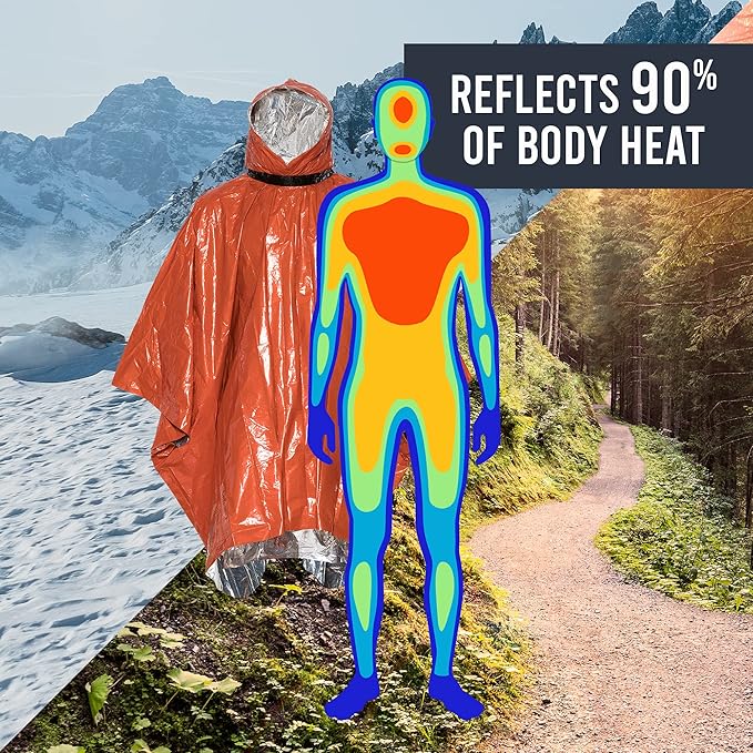 - ✅ 【Full Size Protective Hood】The Life Poncho has a full-size hood that keeps body heat from escaping and can be folded down. Thermal-bonded seams add durability while fitting one person and their survival pack. Enjoy a roomy fit with tear resistance and added strength.