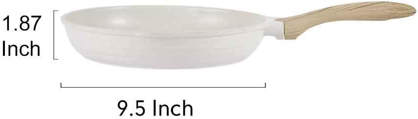 JEETEE 9.5 Inch Nonstick Frying Pan, Stone Coating Cookware, Nonstick Omelette Pan with Heat-Resistant Handle, Induction Skillet for Eggs(Beige)