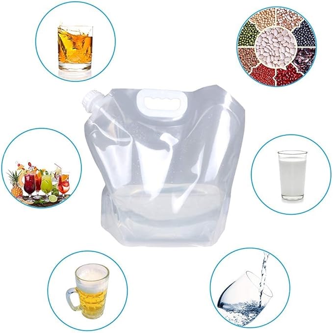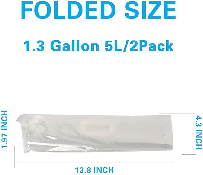 - The package includes 2 pack*1.3 gallons (5 liters) foldable water tank transportation tool. Easily folds or stores flat taking up little space. Stash several in your backpack when traveling or outdoors.