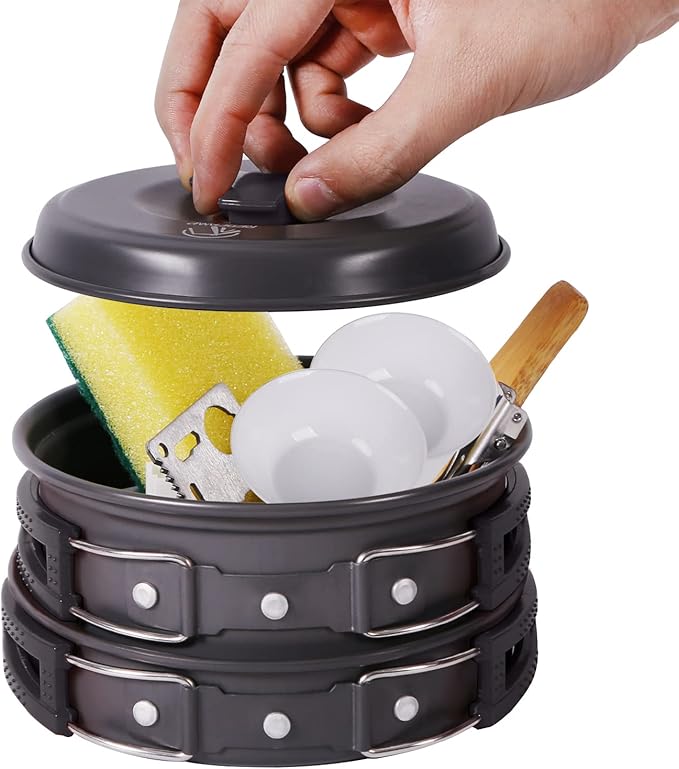 - Lightweight and Mini Size: REDCAMP camping cookware set weighs 1.38lbs/0.63kg. This backpacking cookset is exceptionally lightweight, so you can barely feel its weight in your backpack