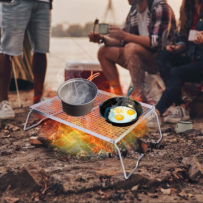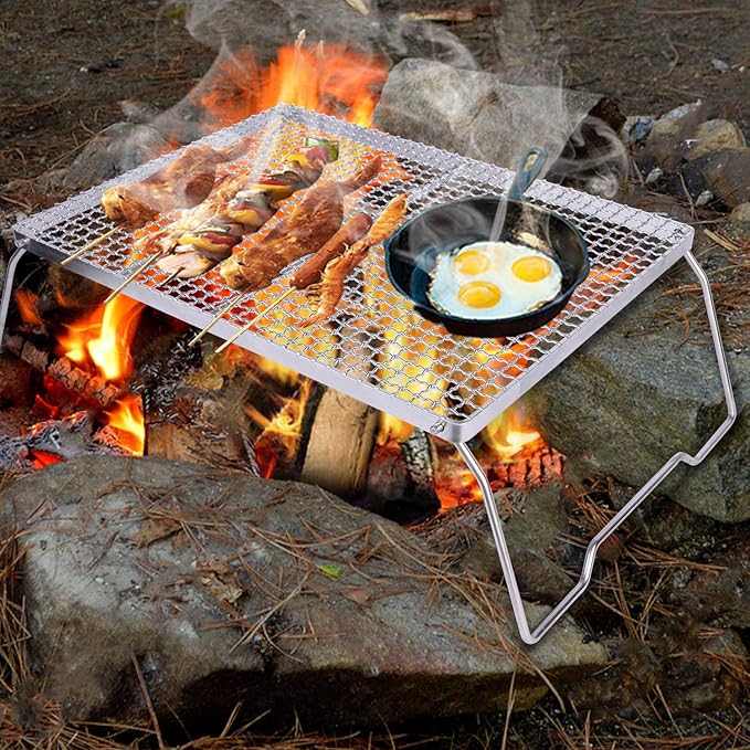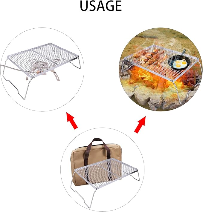 - Multi-Purpose Campfire Grill: The outdoor cooking grill is suitable to use over open fire, charcoal, gas or camping stove. Make delicious outdoor feasts, boil water, and brew coffee over a campfire on top of this freestanding backpack camp grill.