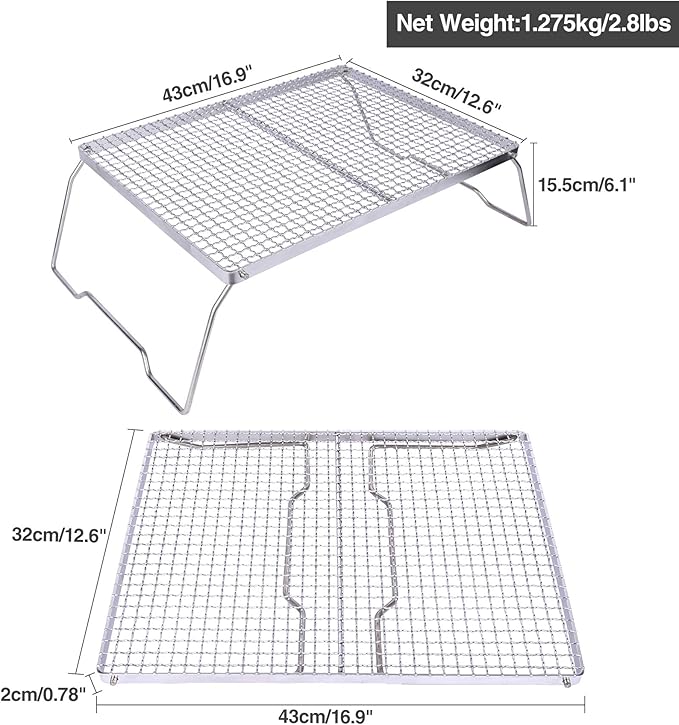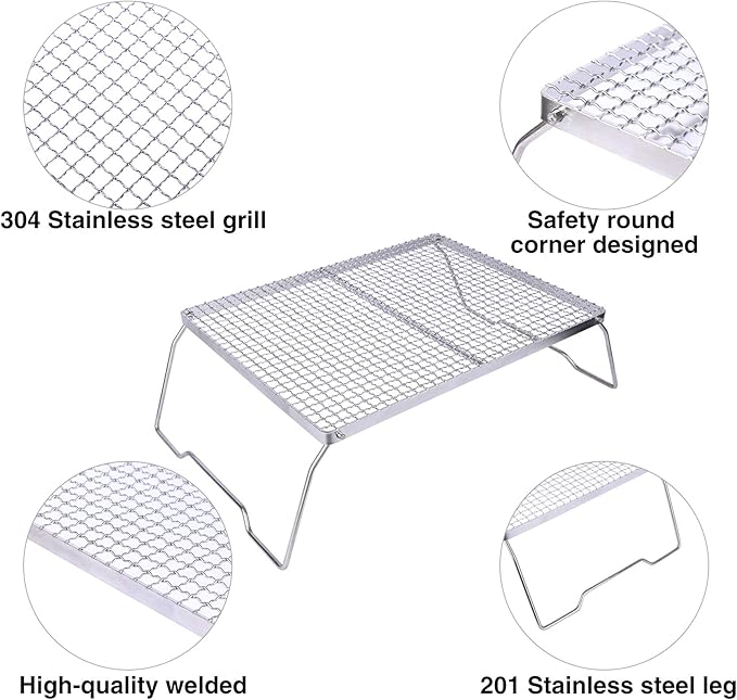 - Heavy-duty Material: The folding campfire grill is made of 304 stainless steel and the legs are made of 201 stainless steel, anti-corrosion and anti-rust, which also makes it lighter and more durable than iron, easy to clean and can be used for long time.