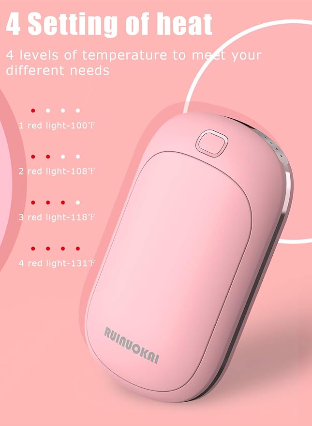 - What You Get - Perfect gift package includes RUINUOKAI Rechargeable hand warmer, USB-C cable, travel pouch, user manual and great after-sales service.