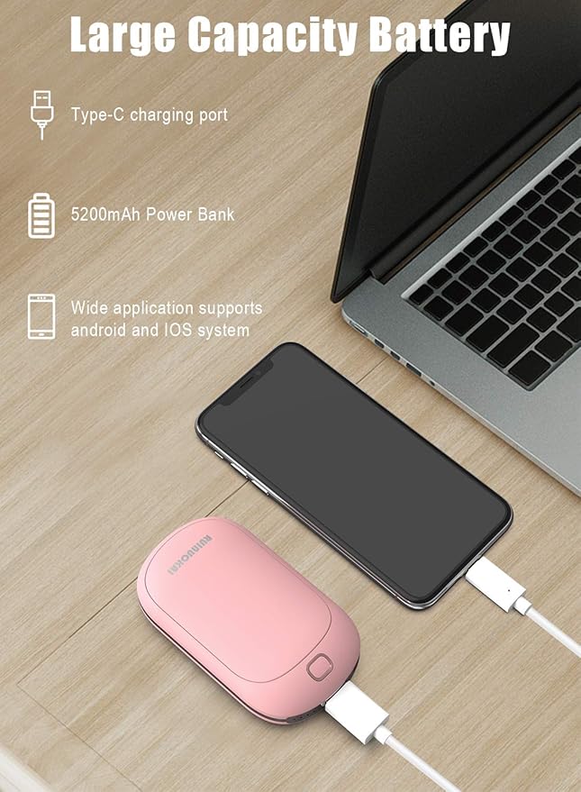 Hand Warmers Rechargeable, 5200mAh Electric Portable Pocket Hand Warmer Heater Pocket Warmer Dual-Sided Quick Heating Great for Outdoor Fishing Hunting Golf Camping Gifts for Men Women