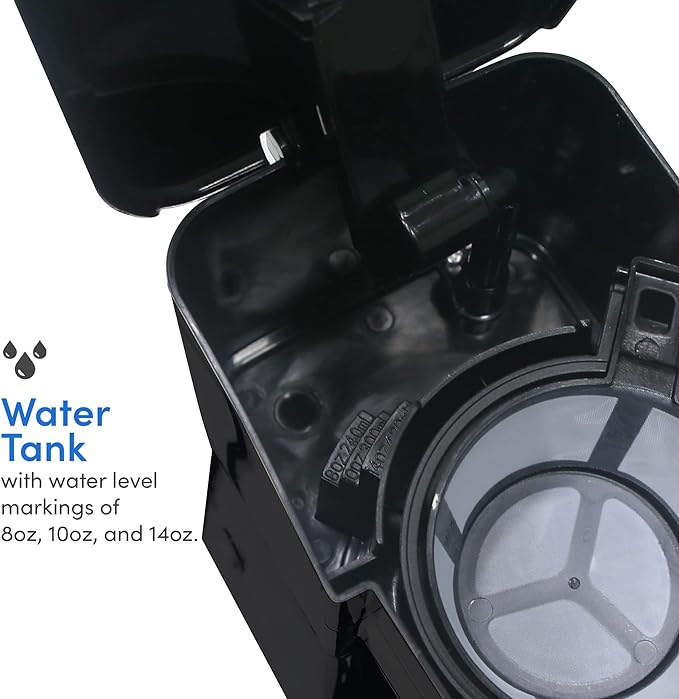 Elite Gourmet EHC111A Personal Single-Serve Compact Coffee Maker Brewer Includes 14Oz. Stainless Steel Interior Thermal Travel Mug, Compatible with Coffee Grounds, Reusable Filter, Black