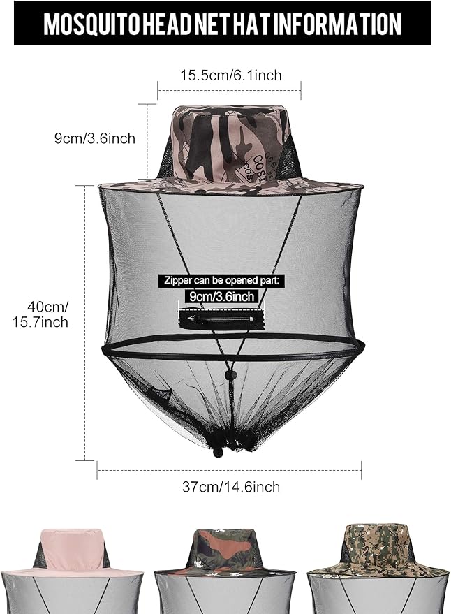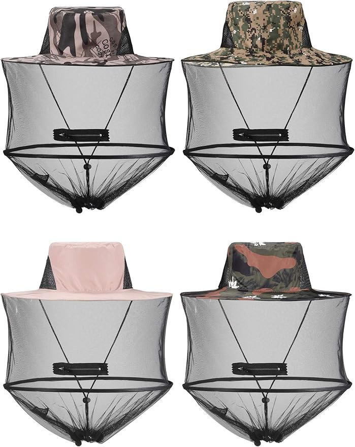 - 4 Colors: the package contains 4 pieces mosquito face hats in different colors, specific patterns please refer to pictures, durable and lightweight to use, foldabe for easier storing and carrying, enough for family use; A black zipper on the mesh net, convenient for drinking or eating without taking off hat