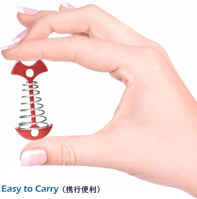 TRIWONDER 6pcs Deck Plank Board Tent Stakes Aluminum Spring Anchor Fishbone Guyline Cord Adjuster Tent Pegs with Carabiners for Outdoor Camping Hiking