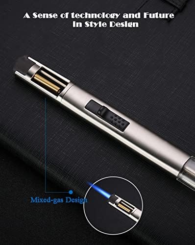 Ambrogio.L 1300 ℃ Jet Torch Lighter Pen Style Adjustable Flame Refillable Gas Cigar Cigarette Lighter Fire Starter with Visible Gas Window,Silver