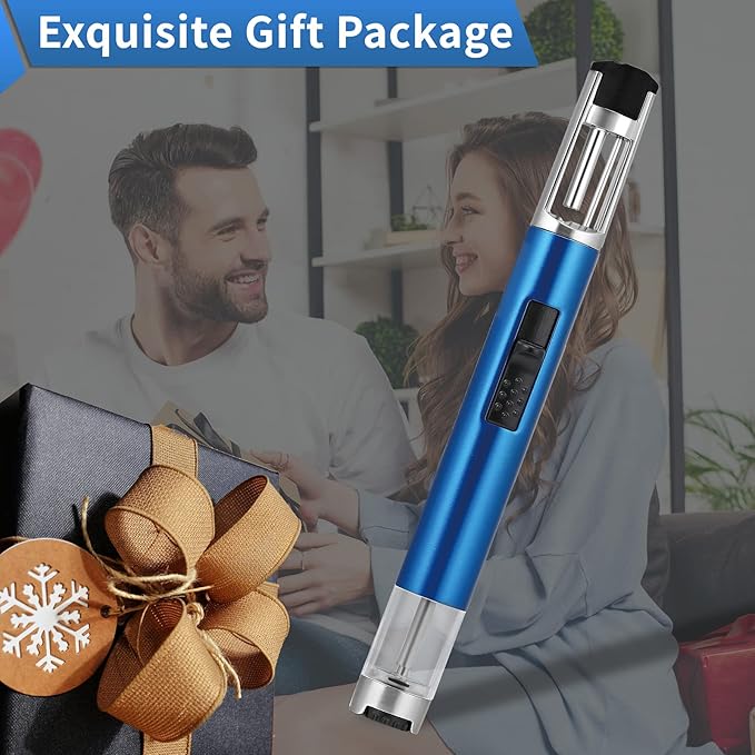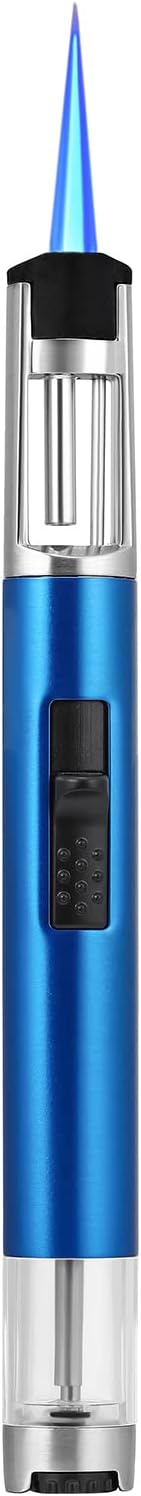 1300 ℃ Jet Torch Lighter Pen Style Adjustable Flame Refillable Gas Cigar Cigarette Lighter Fire Starter with Visible Gas Window,Blue