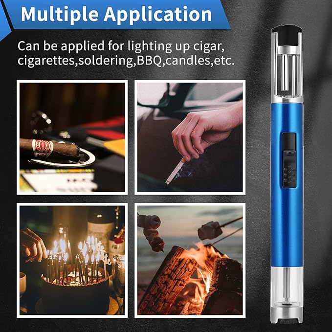 - Powerful Single Jet Torch Lighter:Single jet torch generates up to 1300℃ flame,much enough to light up cigar,candle jars, gas stovetops, BBQ grill, camping, fireworks,soldering work etc.