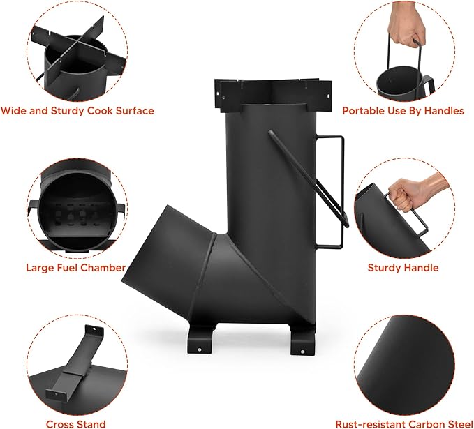 - 【Durability】Made from heavy steel components, the rocket stove is built to last for a long time;