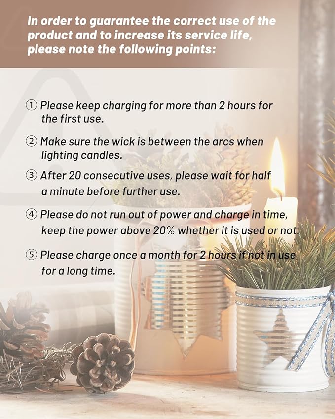 - SET INCLUDES: A candle lighter, a USB charging cable. Details product instructions on the back of products.