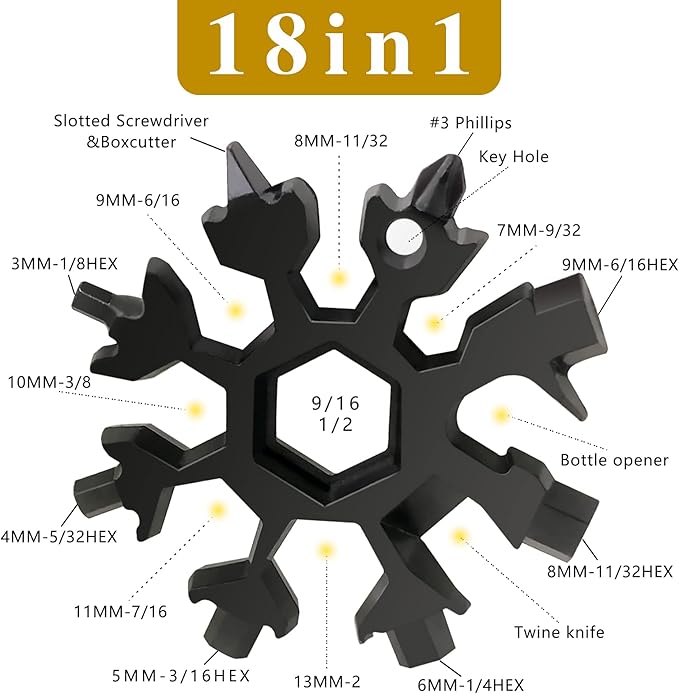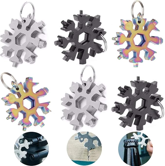 18-in-1 Stainless Steel Snowflake Keychain Multi-Tool Portable Keychain Screwdriver Bottle Opener Tool for Outdoor Camping Gift for Valentine's Day, Birthday, and Happy New Year (Multi 6 PACK)