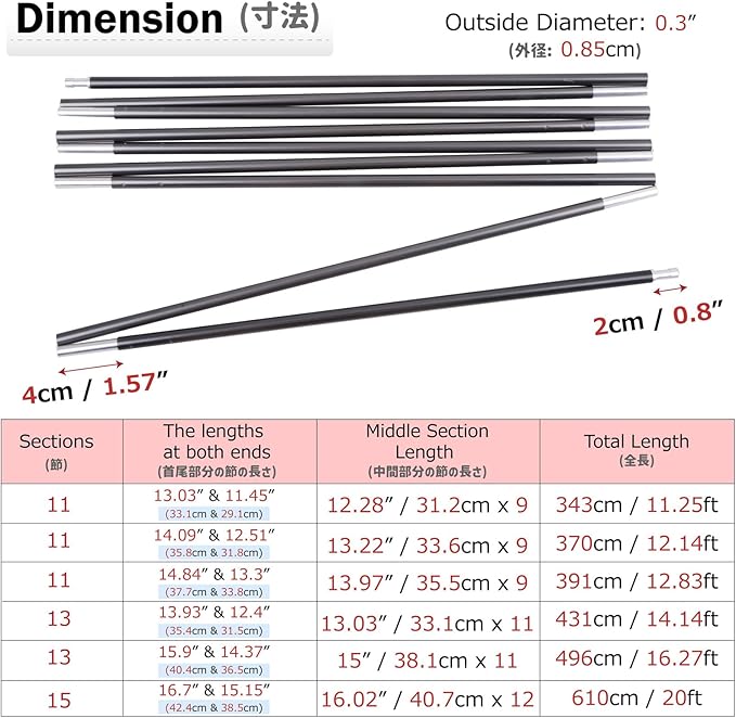 - 🦜 MATERIAL: Made of the highest quality 7001 series aircraft grade aluminum and high elastic rope. This ensures that the poles can bend well, while many cheap aluminum poles will wrinkle or snap. Every pole sections are carefully handled for a smooth connection between pole sections for your really quick set-up / takedown