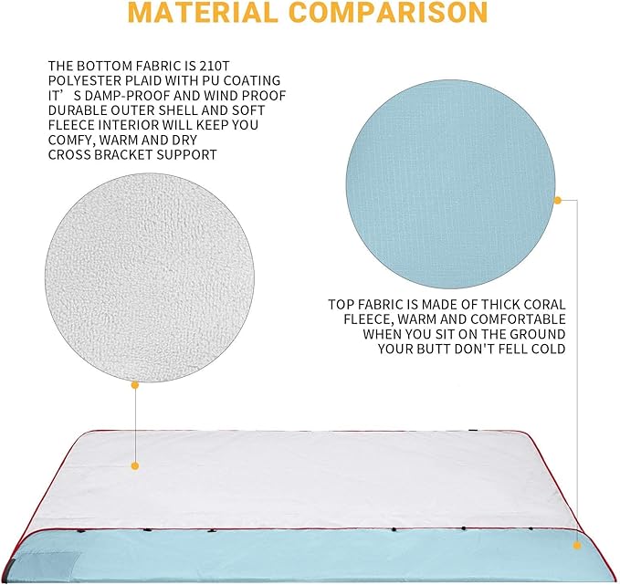 - 【WARM BLANKET FOR CAMPING】 Thick and soft coral fleece fabric on the top to keep your body warm. Buckle the buttons of the outside blanket, wrap your body up in cold camping night or windy stadiums, the Cold Weather Camping Blankets can better protect you. Never fear the cold wind again, stay warm, dry and comfy all day.