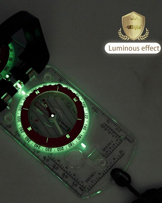 - 【Multi-function Compass】With many other features such as magnigying lens,and measuring scales(in Inches, mm, 1:25000),lanyard with LED light.Packed a small screwdriver with compass as well.This orienteering compass may be what you are looking for before you can set out for your next hike.BIJIA provide lifetime warranty for every customers.Please contact us if you have any questions.
