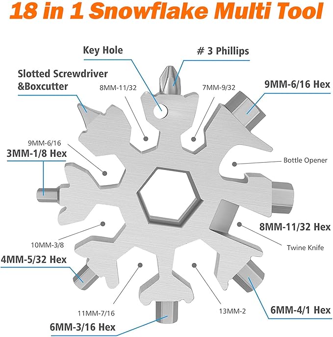 18-in-1 Snowflakes Multi Tool, Stainless Steel Keychain Multitool Portable Snowboarding Screwdriver -Bottle Opener for Christmas Gift for Mens