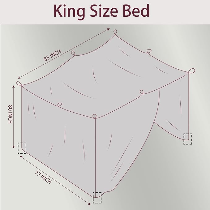 - Pack: The 8 points hanging system don' t require special skills, for home and travel. You can hang it from the corners of your four-post bed or any tree branch for an added touch of style and elegance. The height can be adjusted freely according to your needs. When it's set up properly, it is a large box-shape, and definitely big enough to cover a full-sized mattress. Extra string and a carry pouch. Super lightweight and easy to travel within your carry-on luggage.