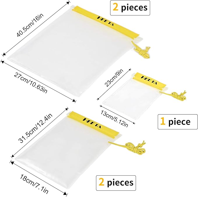 - 5-Pack Clear Waterproof Dry Bag - Multiple Seals: Use seamless professional technology, not easy to tear. Sealing strips, Fold down protection, and magic tape gives your items multiple protections. It can prevent water, humidity, dust, sand, and snow from damaging your valuables