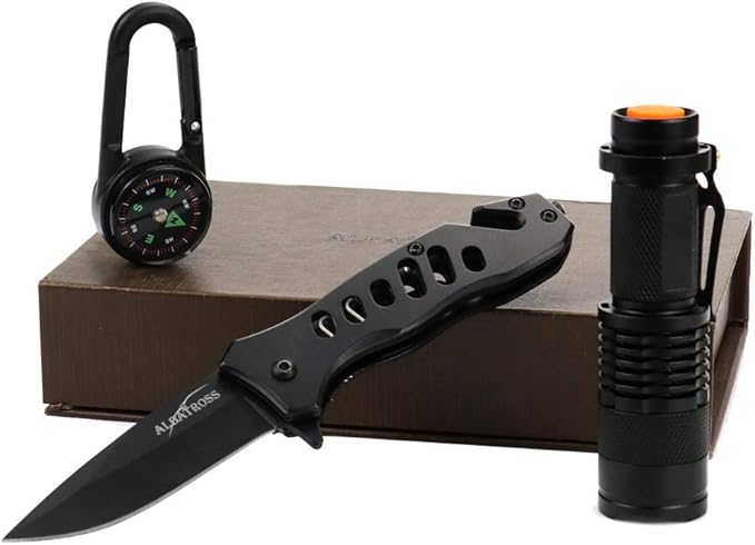 - Included Components : Knife, Tactical Flashlight, Carabiner, Flashlight, Compass