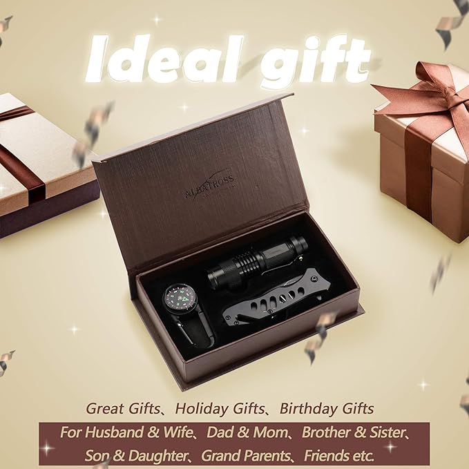 ALBATROSS TS001-2 Camping Survival Kit, Outdoor Emergency Gear Kit for Camping Hiking Travelling,Includes Knife,seltbelt Cutter,Glass Breaker,Flashlight,Compass, Thermometer,Gift Box