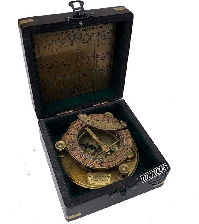 AV Nautical Sundial Brass Compass with Wooden Box - Gifts for Father/Brother/Sailor/Marine