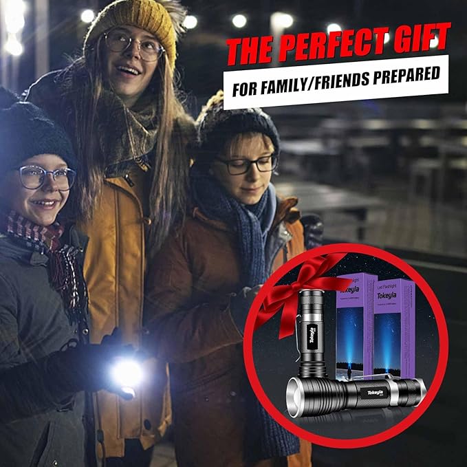 - 【Package included 2 flashlights super bright】Exceptional value for 2 flashlights powerful with good quality and longevity.Great for your car or you bag to go out,or for house store.Also a unique and practical idea to your family or friends.
