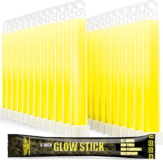 EVERLIT Survival Emergency Glow Sticks- 6 Inches Light Sticks for First Aid Kit, Survival Kit, Camping, Hiking, Outdoor, Disasters, Emergencies Up to 12 Hours Duration… (24 Pack, Yellow)