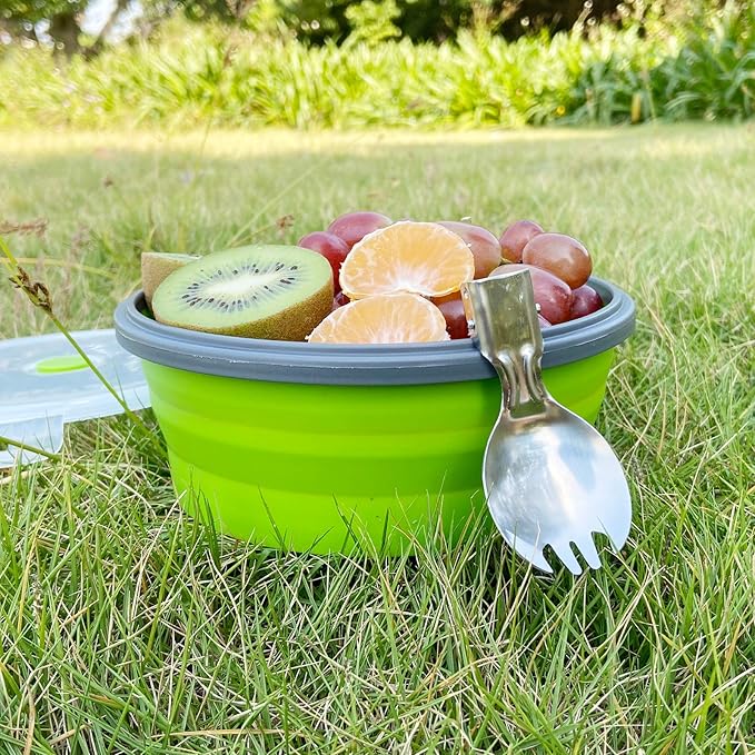 - The silicone collapsible bowl set is perfect as camping bowl, lunch bento box, and food storage container as well. Whether it's soup or noodles, our silicone bowl set has everything you enjoy your food!