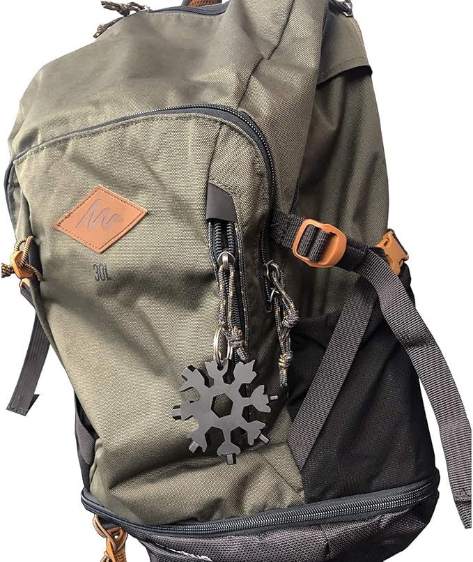 - PORTABLE SIZE: Snowflake shape design, just over 2.4 inches in diameter and 2.8 ounces weight. The attached key ring can connect this multitool and key or backpack together, very easy to carry around, avoiding the possibility of loss.