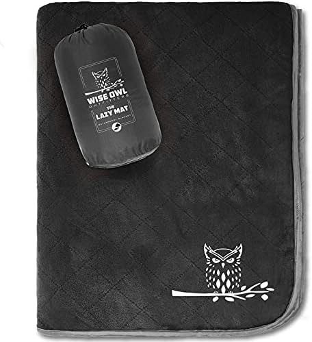 Wise Owl Outfitters Nylon Camping Blanket - Packable & Waterproof Warm Camping Quilt - Outdoor Blanket for Stadium, Backpacking, Camping, Travel, and Hiking - Black Grey, Large