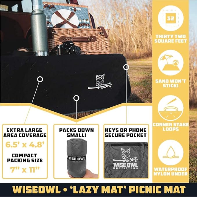 - PACKABLE: Lightweight and convenient, our picnic mat packs down super small in its water-resistant bag and can be taken anywhere - from the park to the beach, to the stadium!
