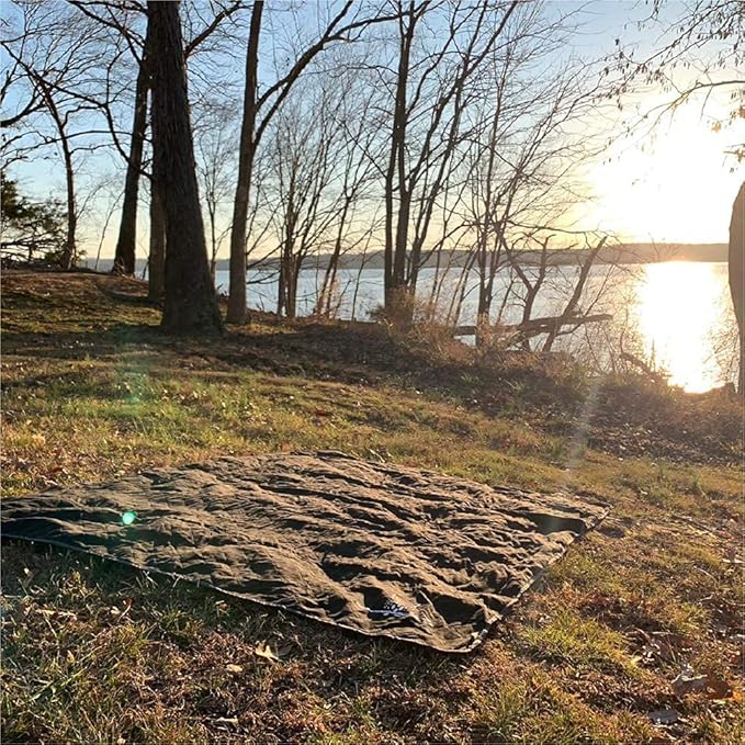 - DURABLE: Made with strong, waterproof nylon, reinforced stitching, and corner stake loops, our outside camp blanket is windproof and built to withstand all weather conditions.