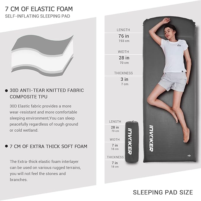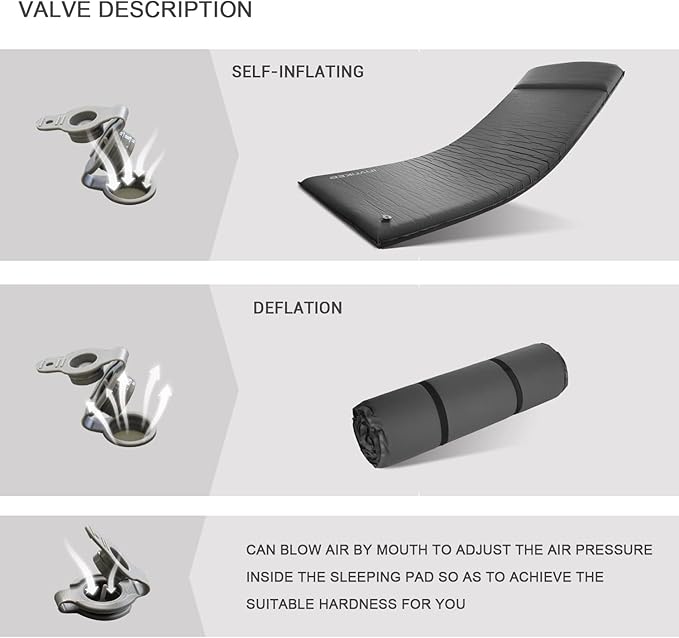 - RAPID INFLATION TECHNOLOGY: Camping mattress Using the most advanced Self-inflating technology, rapid inflation in 25 seconds, abandoning the old inflation method, when others are blowing, you have already fallen asleep on your sleeping mat. According to the test of many outdoor testers, the R-value of the mat is 9.5, making it a perfect all-season mat;